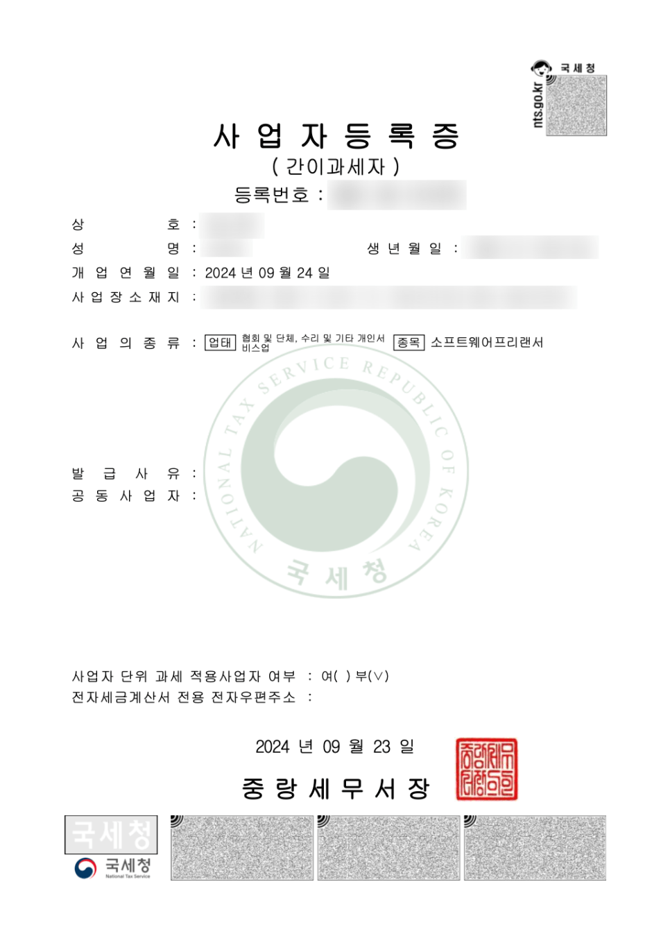 لقد عملت كمطور بشكل جانبي لمدة 4 سنوات. مع الحفاظ على وظيفتي بدوام كامل، قررت التسجيل كمؤسسة فردية في كوريا لإدارة دخلي الجانبي بشكل أكثر احترافية.