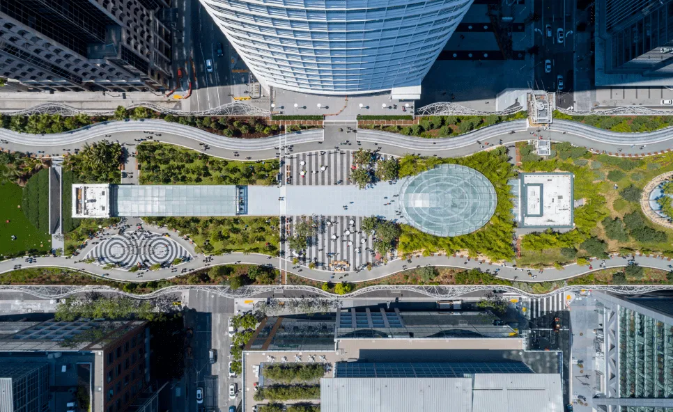Salesforce Park ليست مجرد حديقة عادية — إنها حديقة عائمة مبنية على سطح مبنى. كونها في واحدة من أغلى المناطق العقارية في سان فرانسيسكو، فإن وجود مساحة خضراء كبيرة كهذه أمر مثير للإعجاب. تقع الحديقة في الواقع على سطح Salesforce Transit Center، مما يجعلها تبدو كواحة حضرية.
